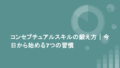 具体的なトレーニング方法については関連記事「コンセプチュアルスキルの鍛え方|今日から始める7つの習慣」で詳しく扱います。